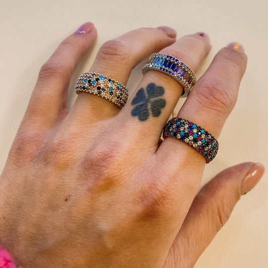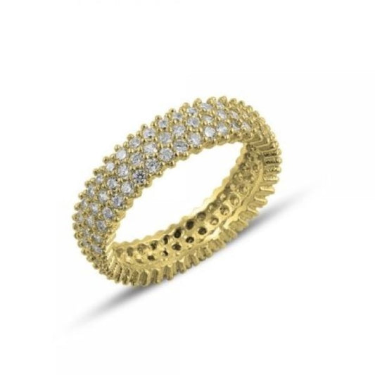 Sterling Silver Gold Plated Three Row CZ Band Ring