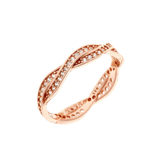 Sterling Silver Rose Gold Plated Twisted CZ Ring