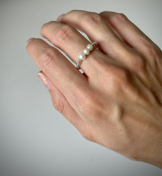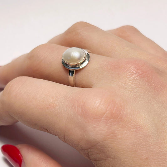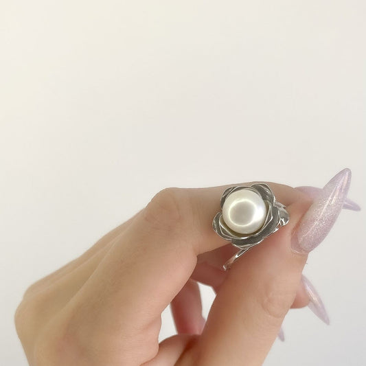 Sterling Silver Rhodium Plated Pearl Flower Ring