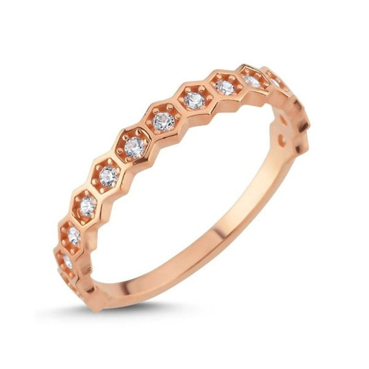 Sterling Silver Rose Gold Plated CZ Band Ring