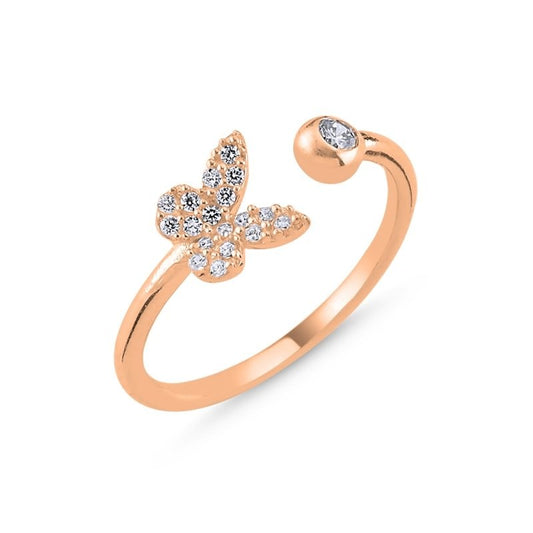 Sterling Silver Rose Gold Plated Adjustable CZ Butterfly Ring