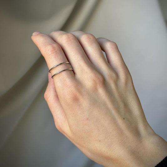 Sterling Silver Rhodium Plated CZ Double Band Ring