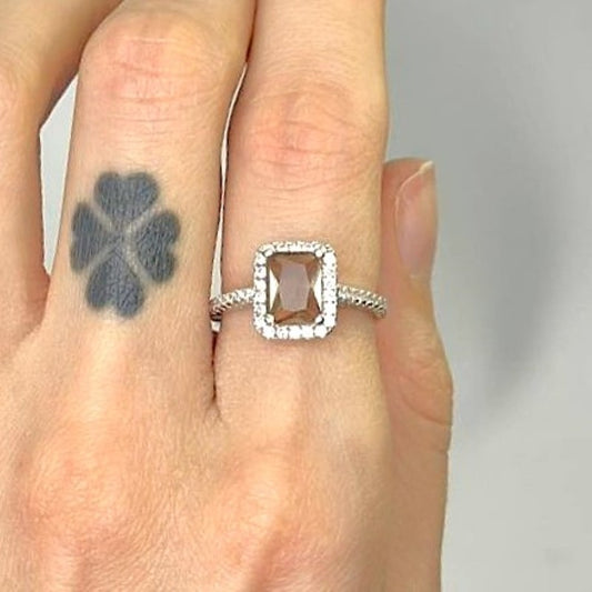 Sterling Silver Rhodium Plated Rectangle Zultanite Ring