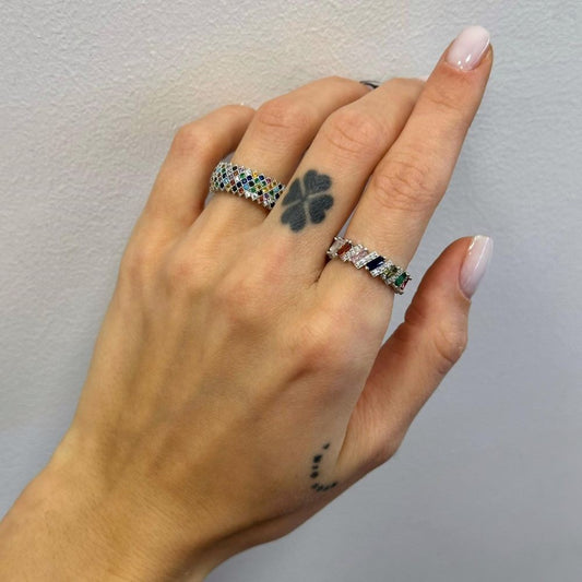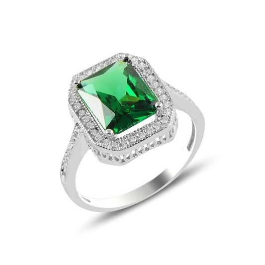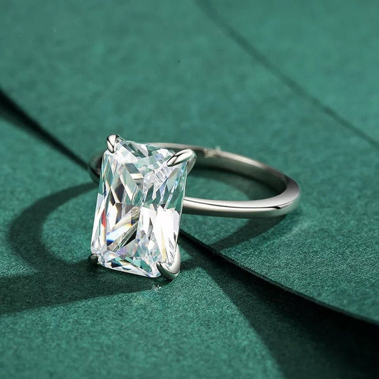 Silver Rhodium Plated Rectangle CZ Crystal Ring