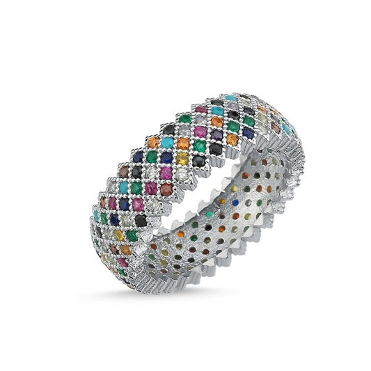 Sterling Silver Rhodium Plated Five Row CZ Band Ring