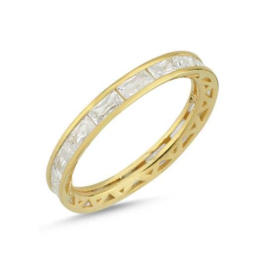 Sterling Silver Gold Plated 3 mm Rectangle CZ Band Ring