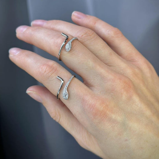 Sterling Silver Rhodium Plated CZ Snake Ring