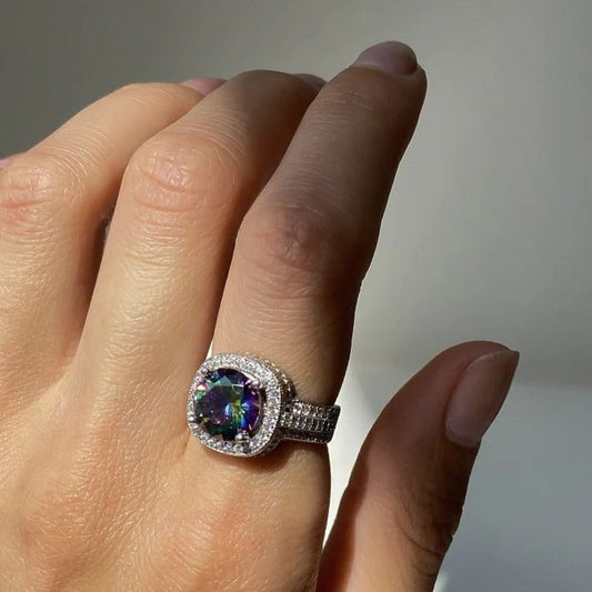 Sterling Silver Rhodium Plated Mystic Topaz Ring