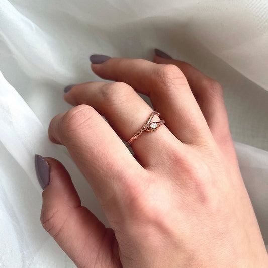 Scandinavian Silver Rose Gold Plated CZ Band Ring