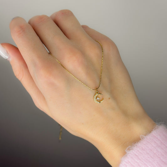 Auksuotas pakabukas "Žvaigždutė su mėnuliu" ir grandinėle