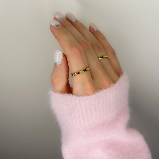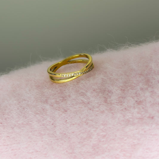 Dvigubas auksuotas žiedas su cirkoniais