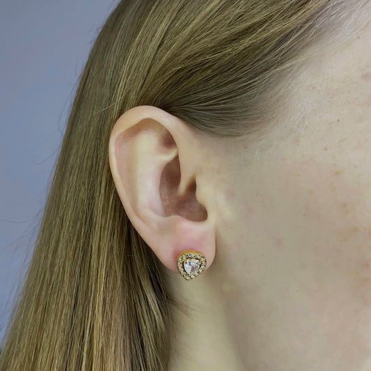 Auksuoti auskarai "Širdutės" su cirkoniu