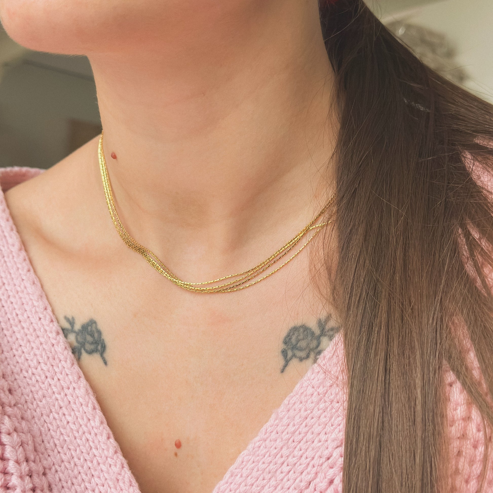 Nerūdijantis hipoalerginis 316L chirurginis plienas su aukso danga. Daug patvaresnis nei sidabras, auksas ar platina. Nerūdys, nepatamsės, neišbluks ir nenudažys odos.