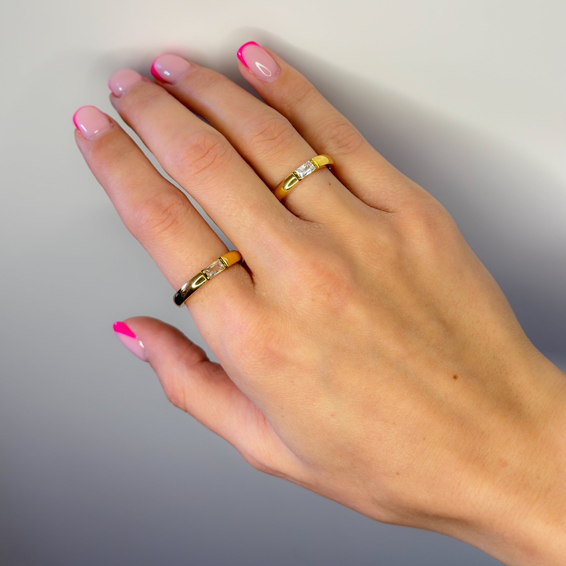 Auksuotas žiedas su stačiakampiu cirkoniu