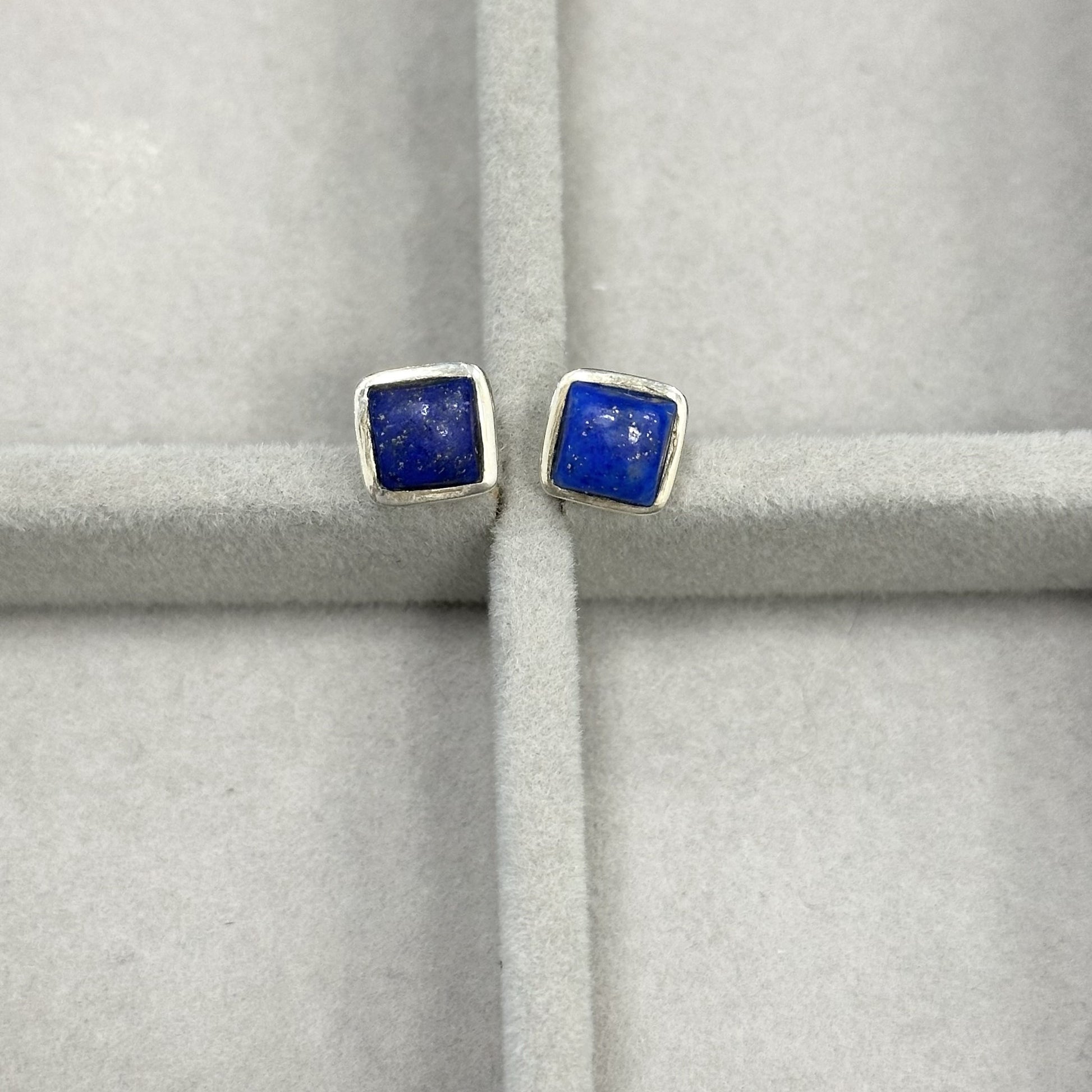 Sidabriniai kvadratiniai auskarai su lazuritu