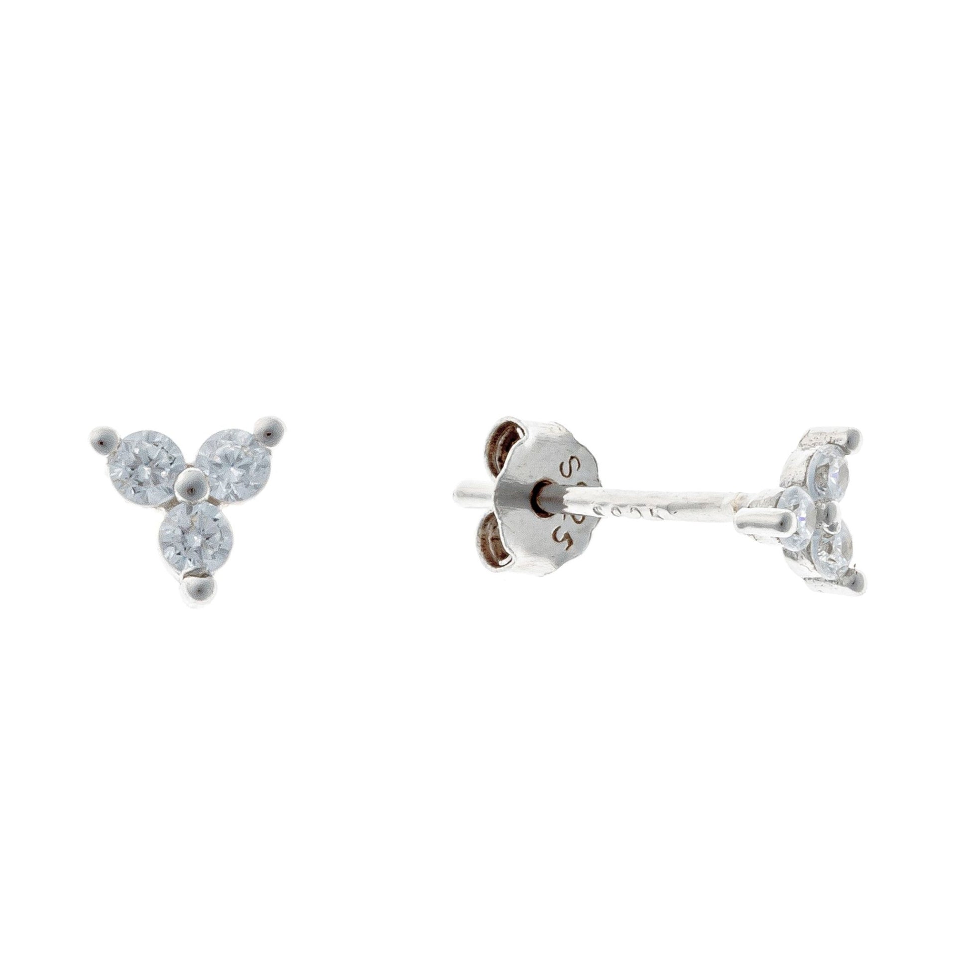 Sterling Silver Rhodium Plated CZ Flower Studs