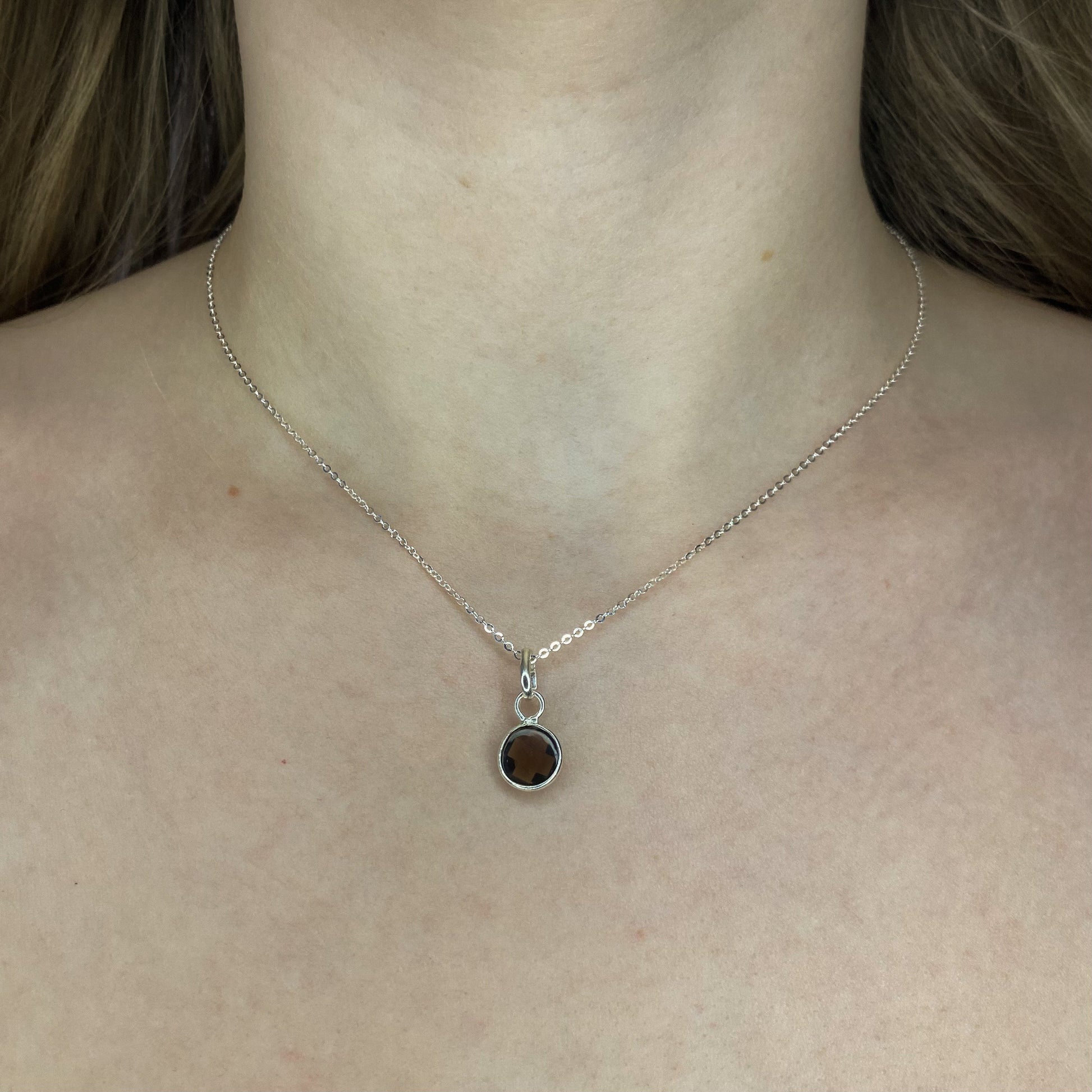 Sidabrinis pakabukas su apvaliu dūminiu kvarcu ir grandinėle