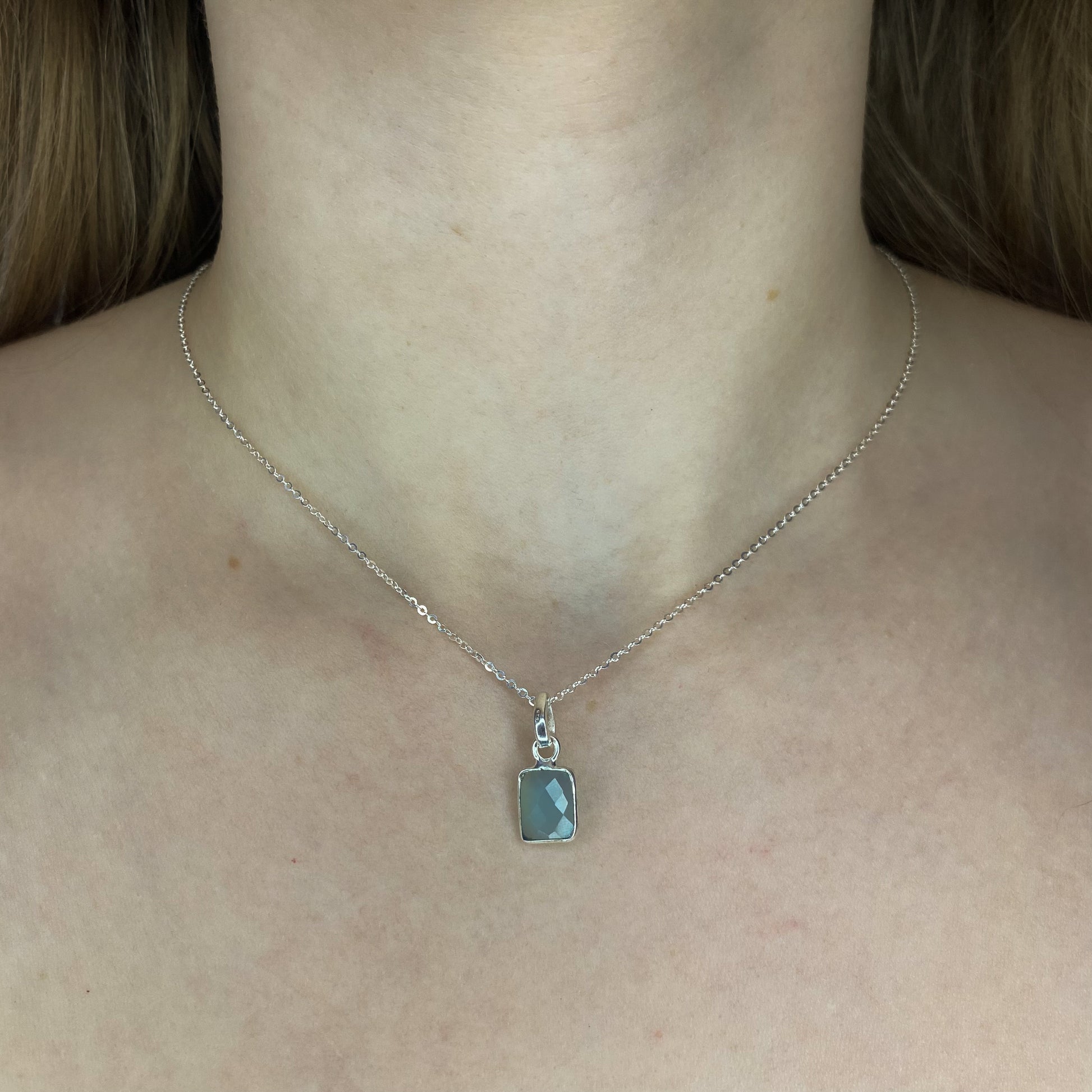 Sidabrinis pakabukas su chalcedonu ir grandinėle