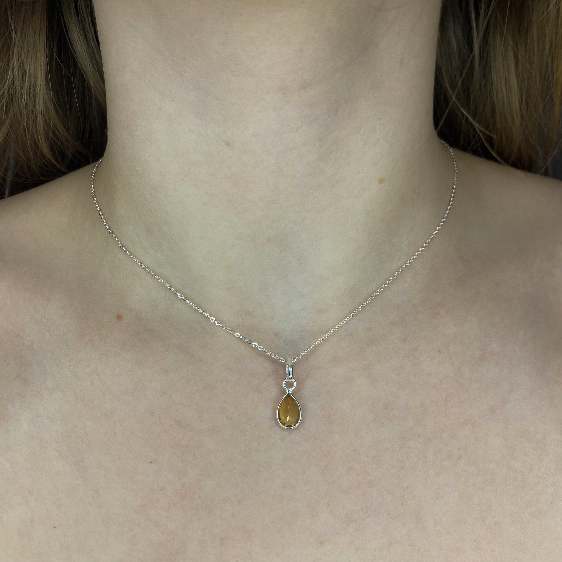 Sidabrinis pakabukas su citrinu ir grandinėle