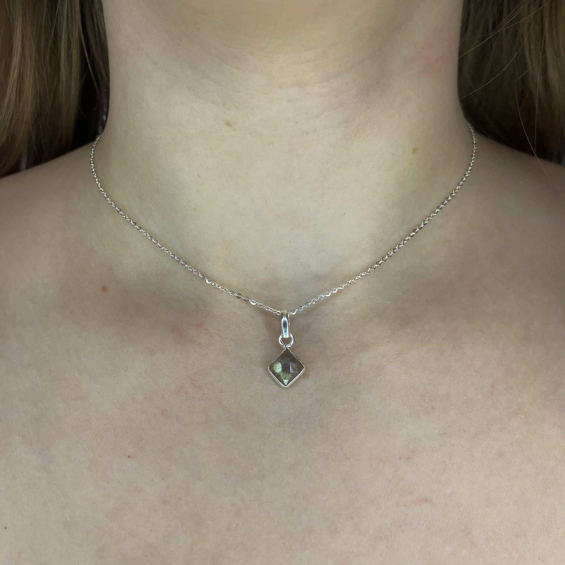 Sidabrinis pakabukas su labradoritu ir grandinėle