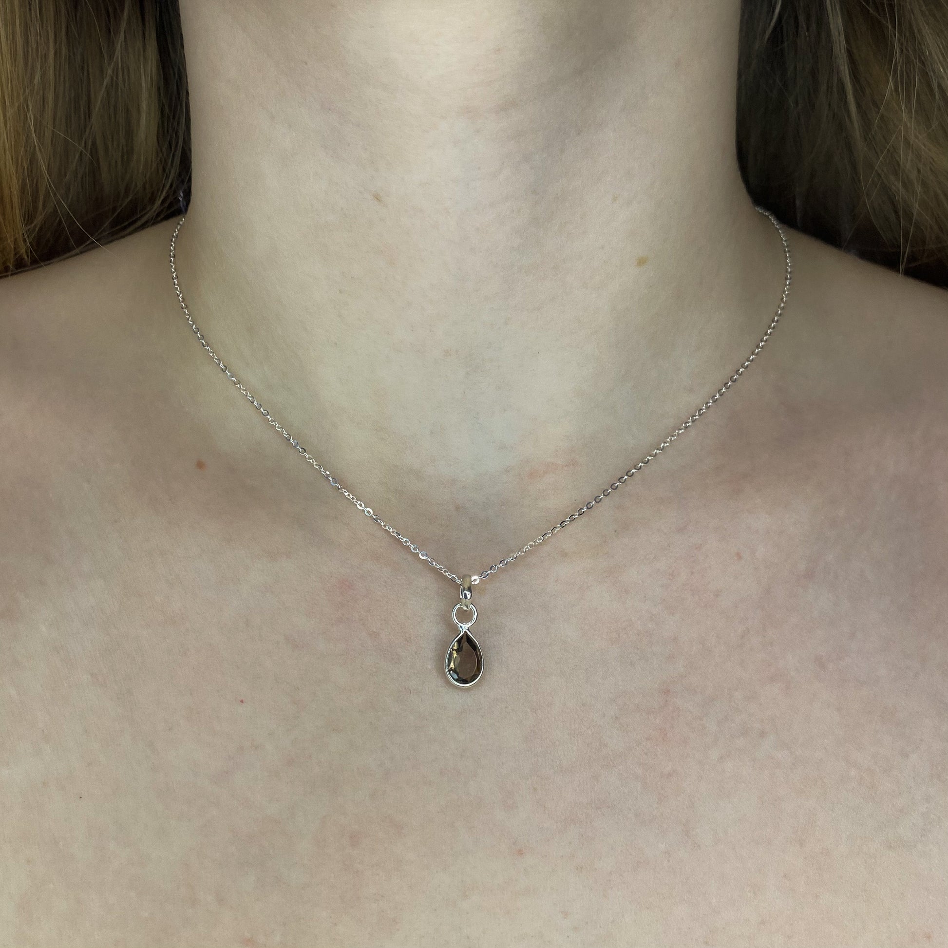 Sidabrinis pakabukas su lašo formos dūminiu kvarcu ir grandinėle