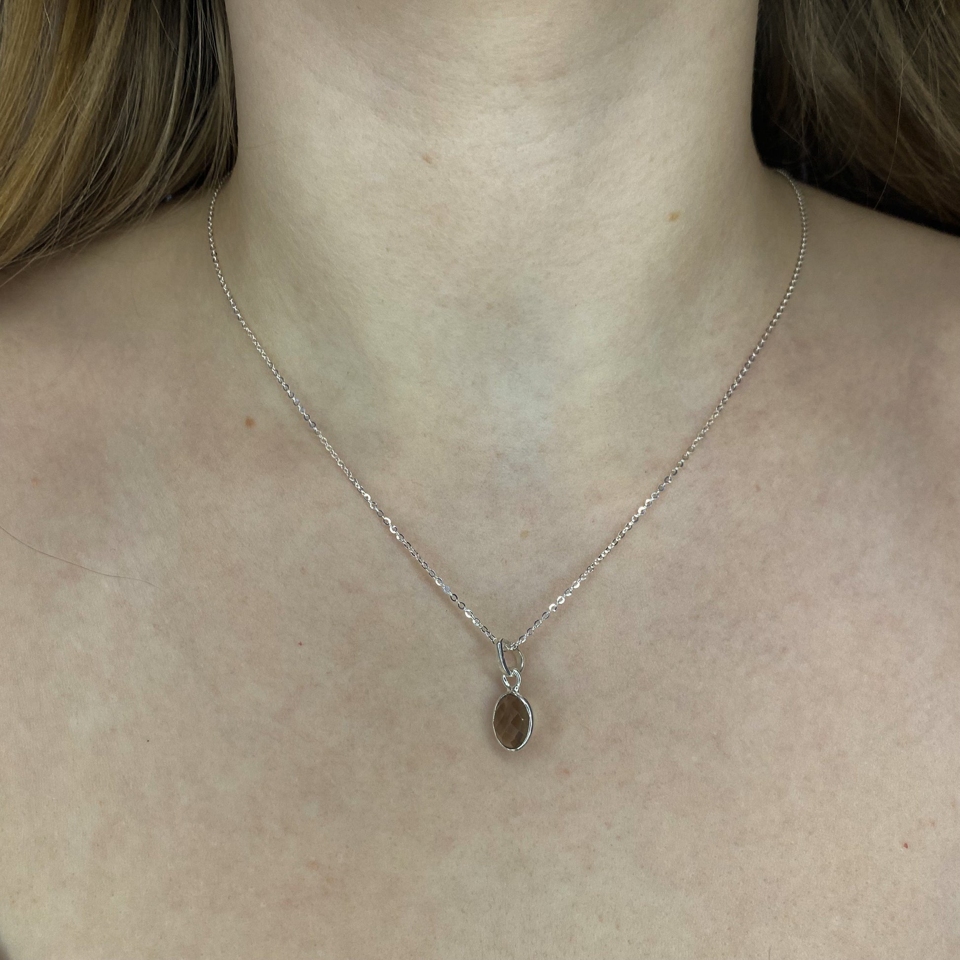 Sidabrinis pakabukas su ovaliu dūminiu kvarcu ir grandinėle