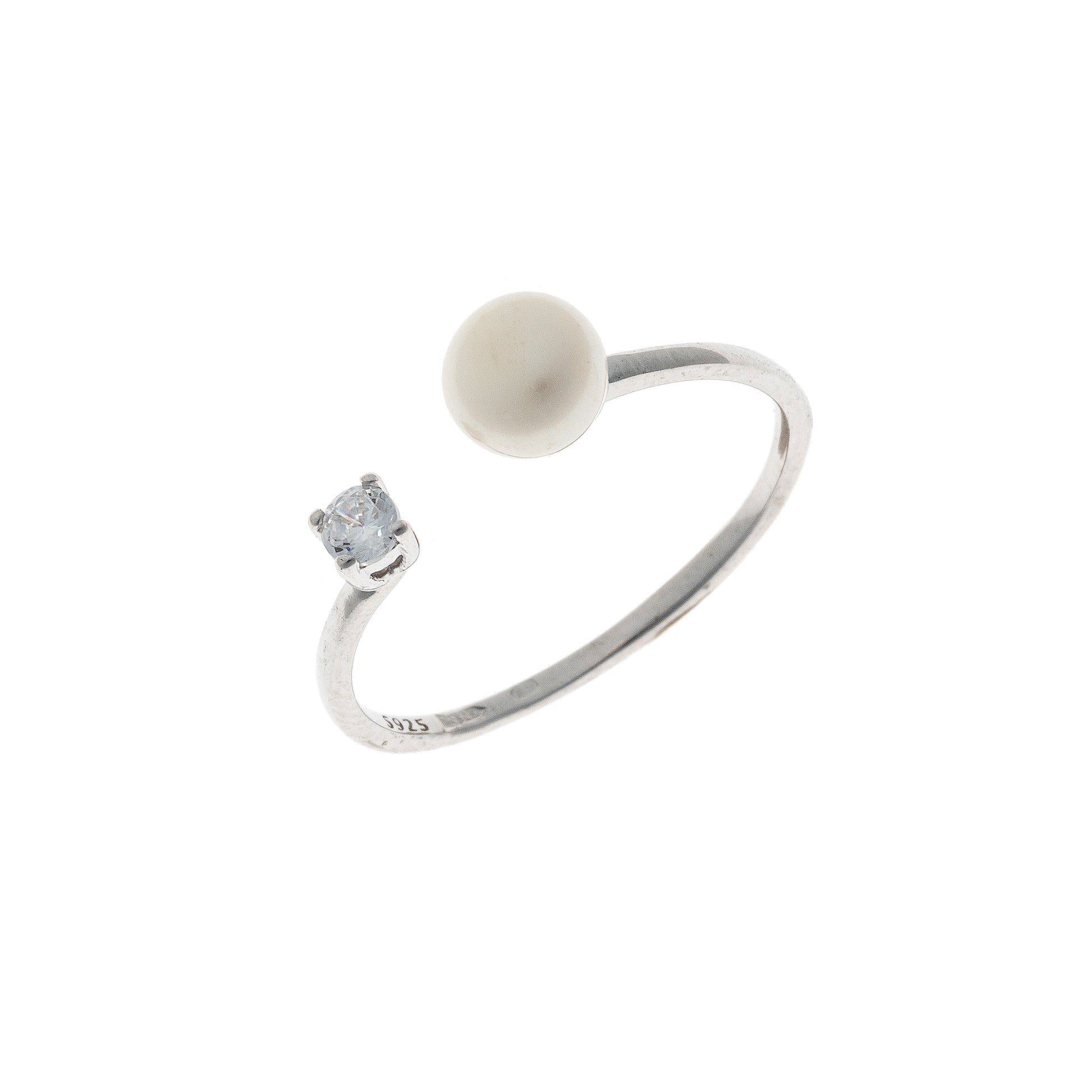 Sterling Silver Rhodium Plated Pearl & CZ Crystal Ring