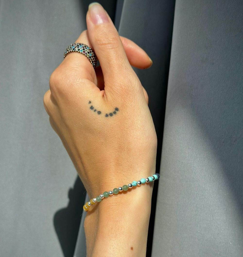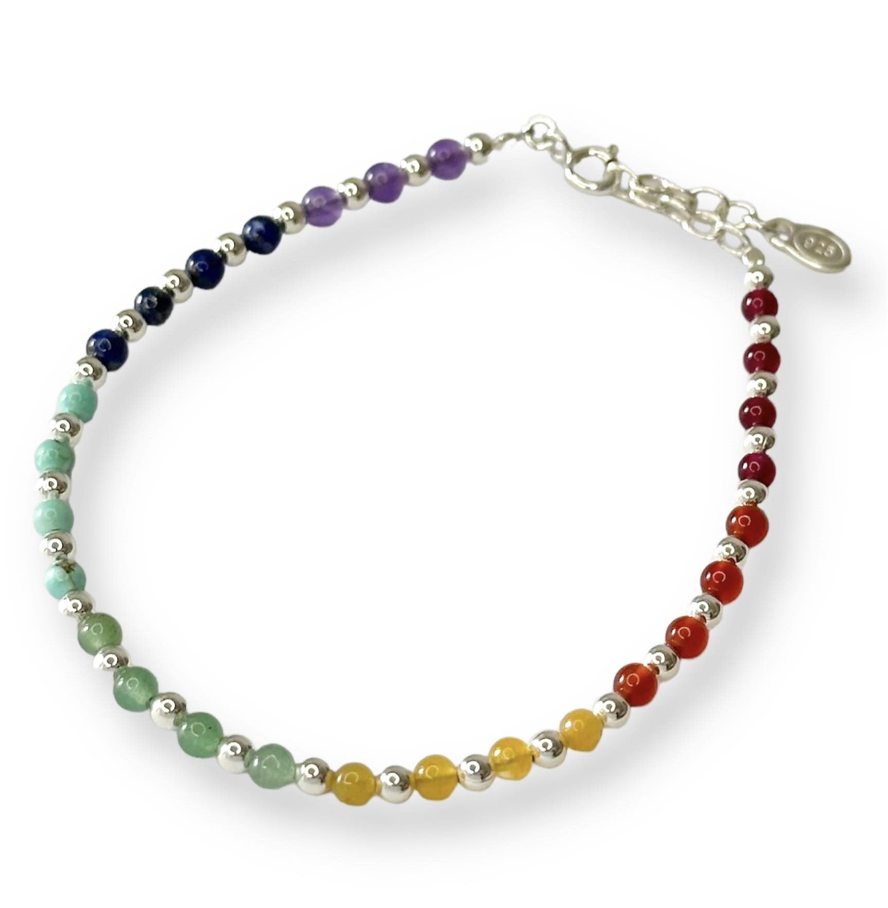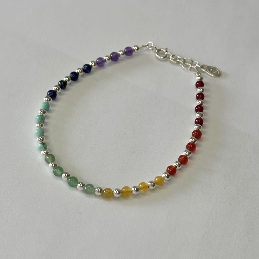 Apyrankė su 7 rūšių skirtingais akmenukais ir sidabro karoliukais