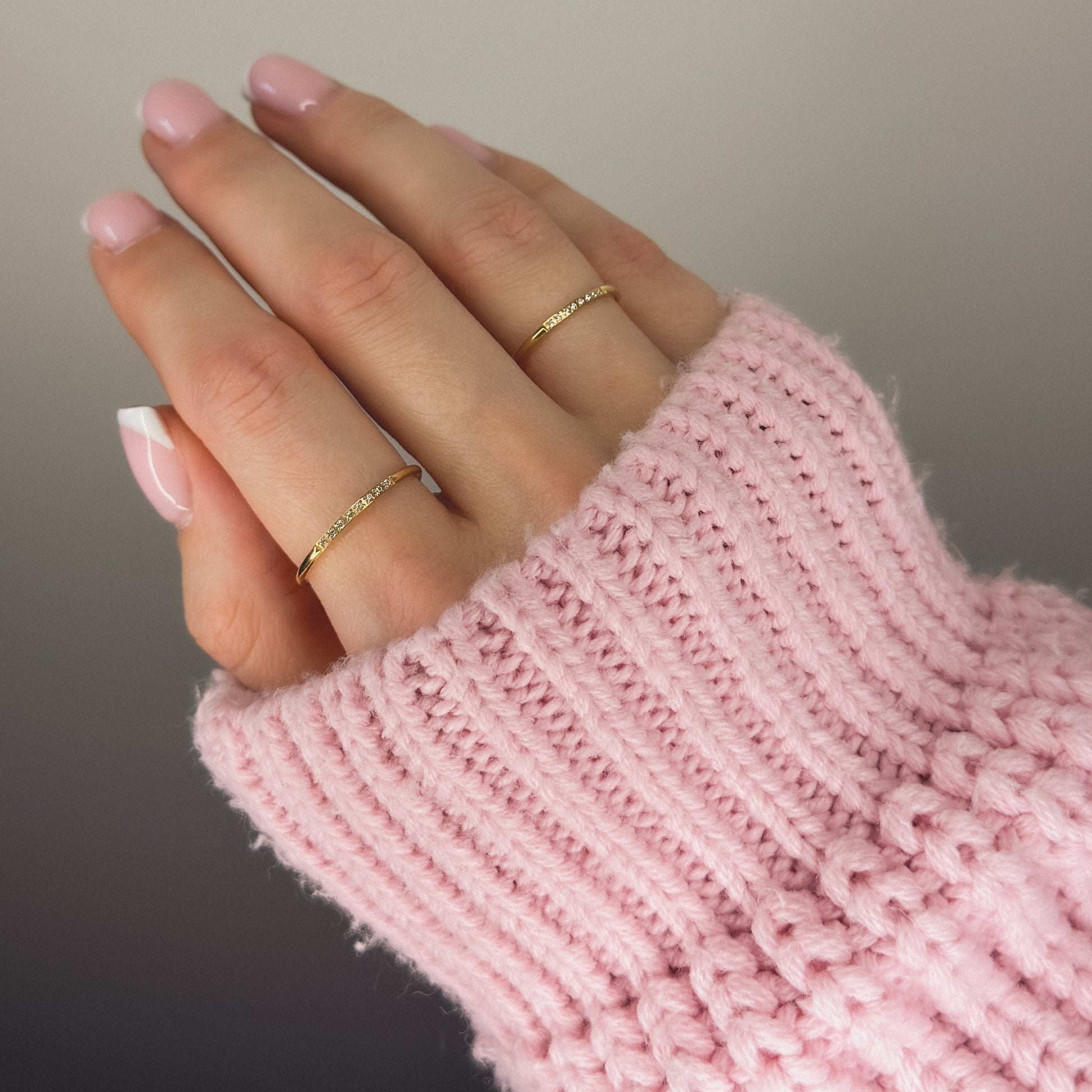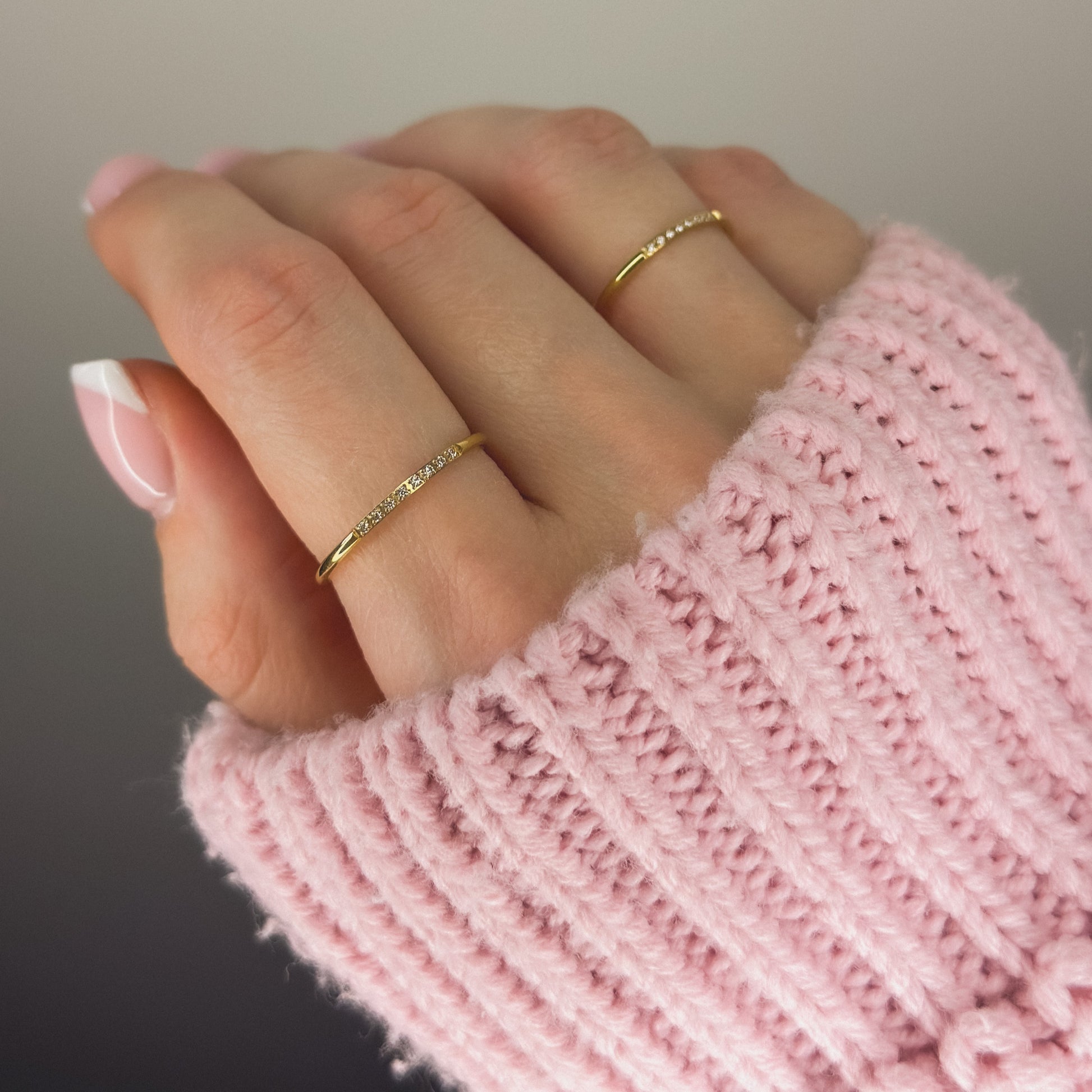 Auksuotas žiedas su 8 mažais cirkoniais