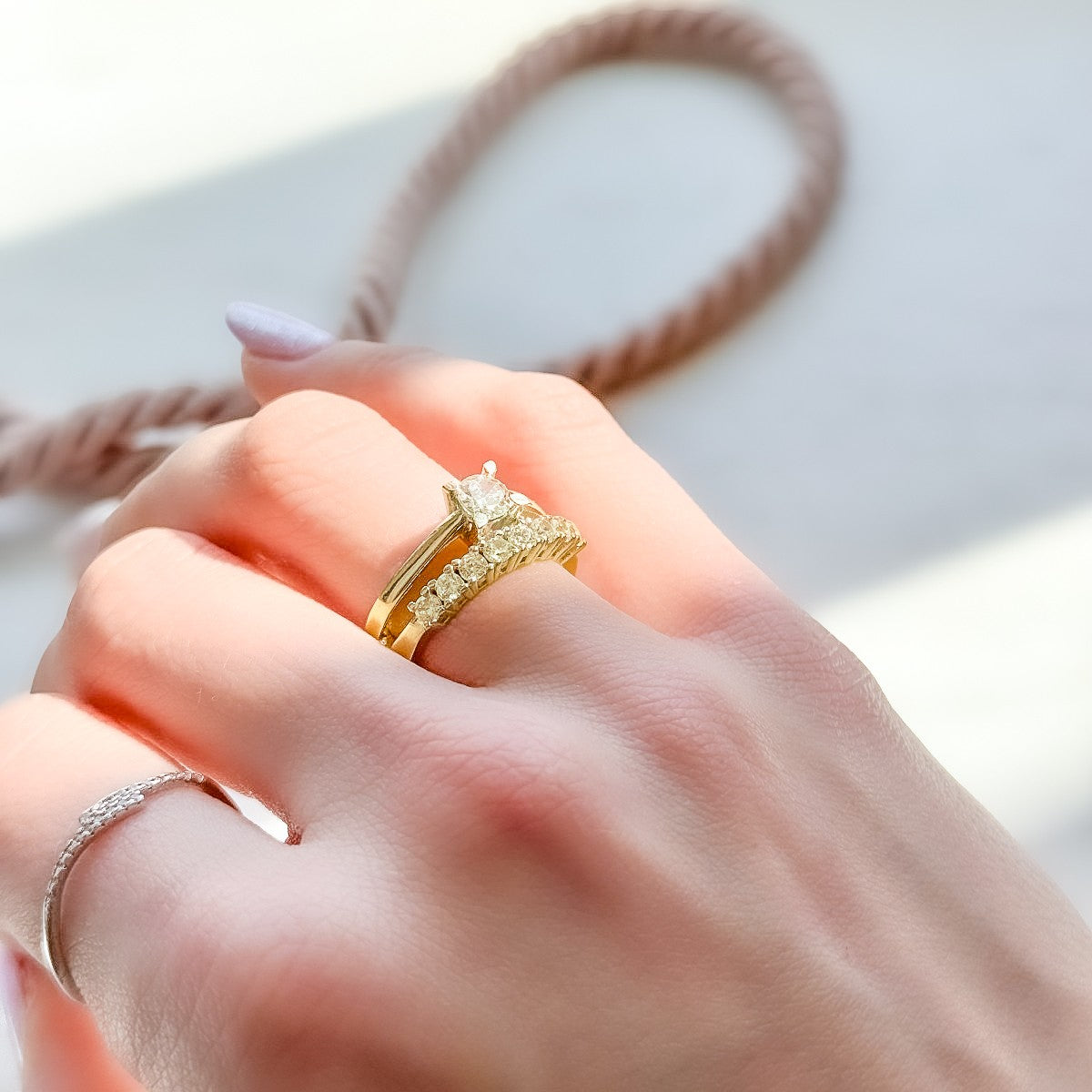 Dvigubas sujungtas sidabrinis auksuotas žiedas su 1 eil. cirkonių