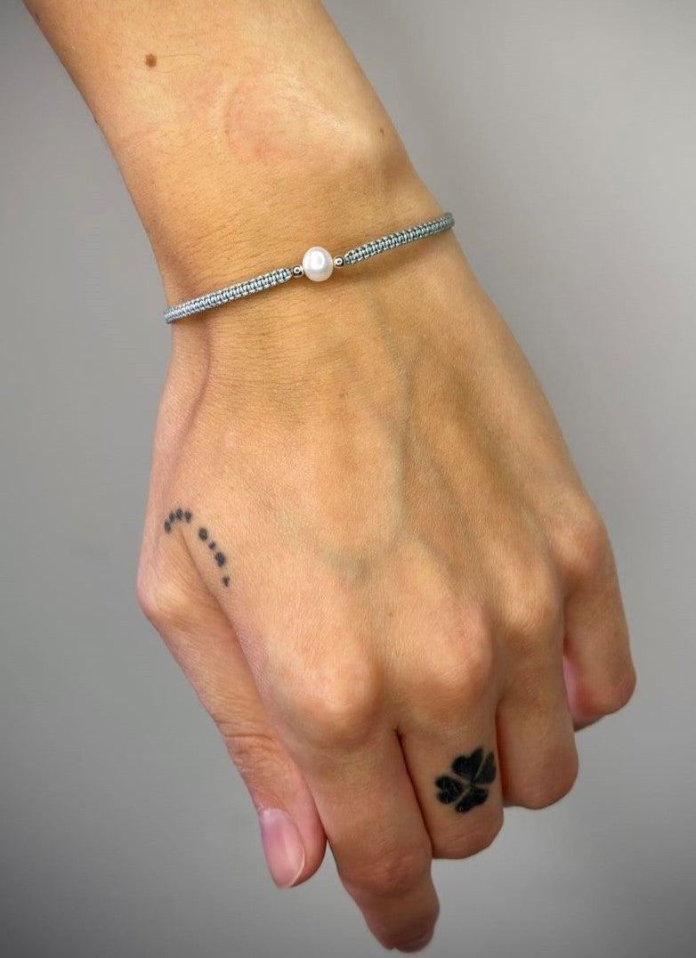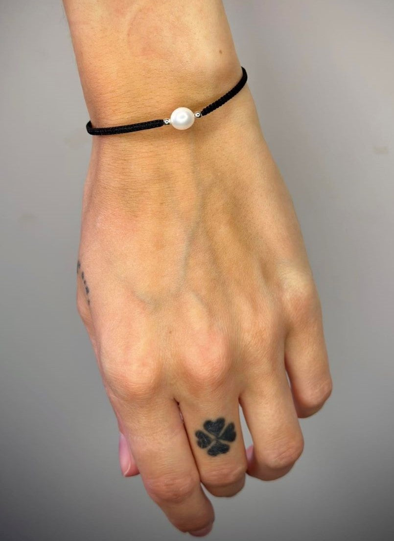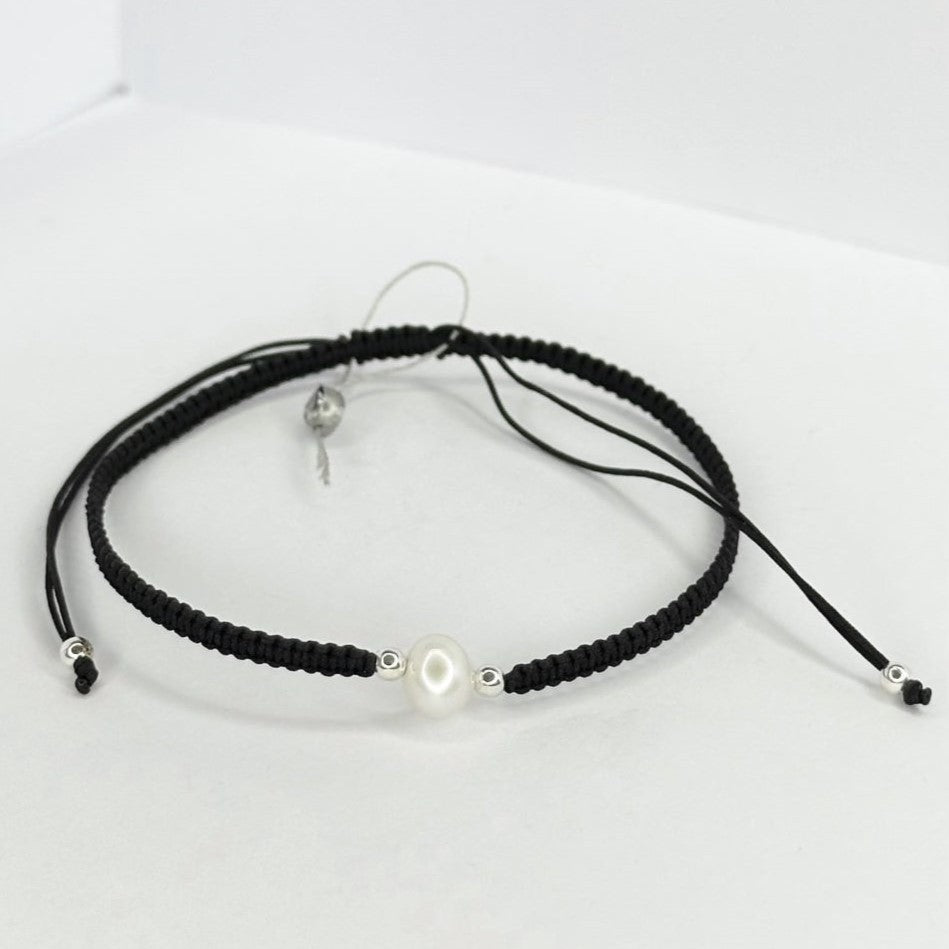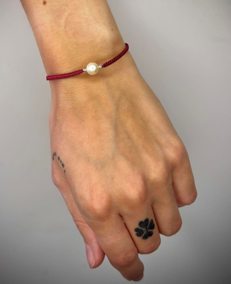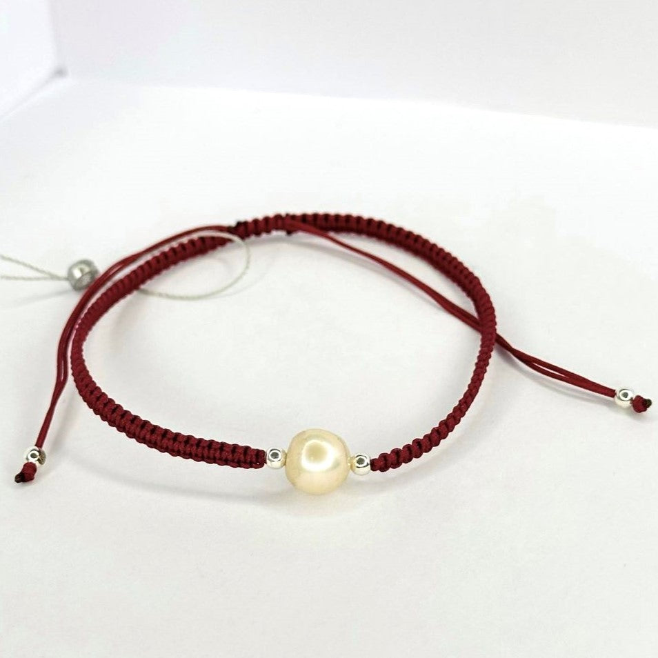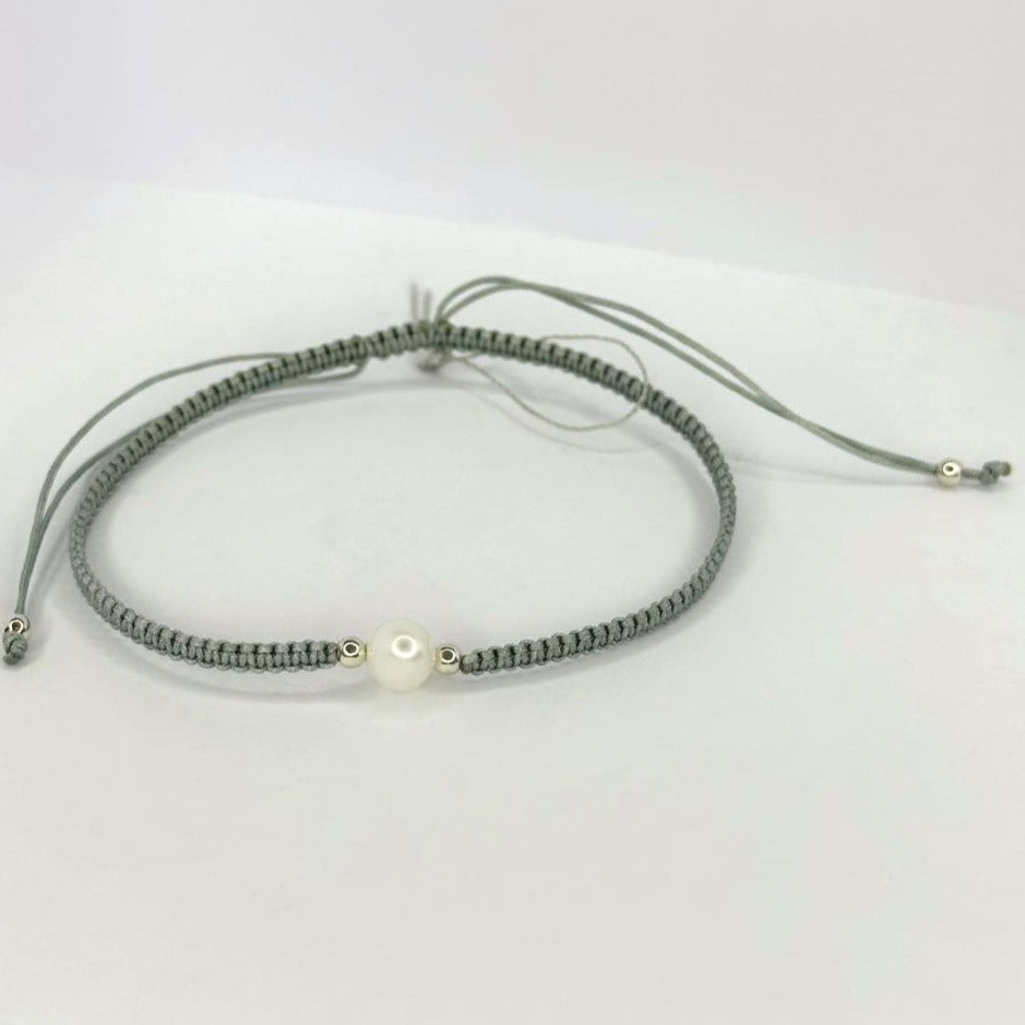 Įvairių spalvų siūlo apyrankės su tikru perlu ir sidabriniais karoliukais
