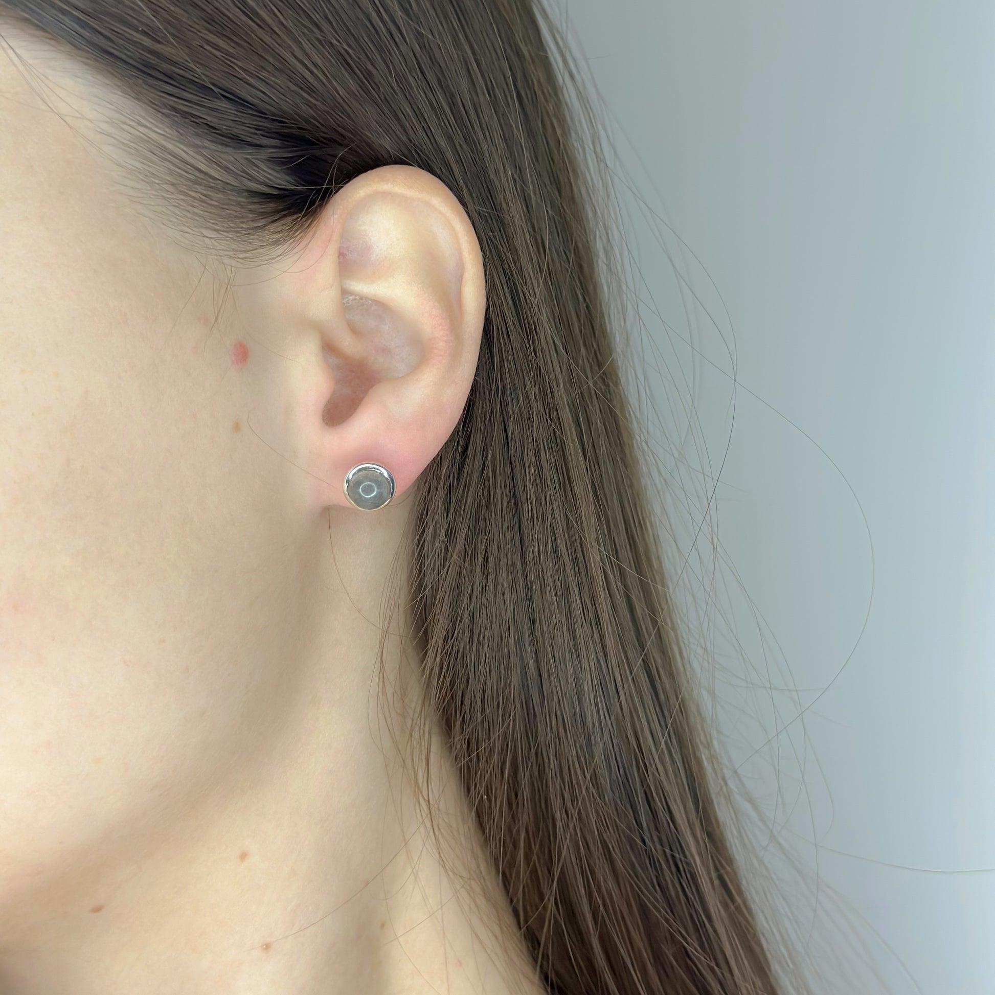 Labradoritas ¦ sidabriniai auskarai su apvaliu labradoritu