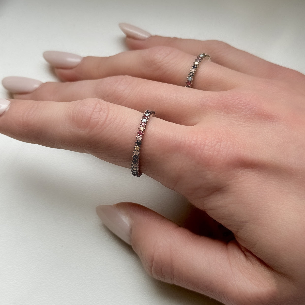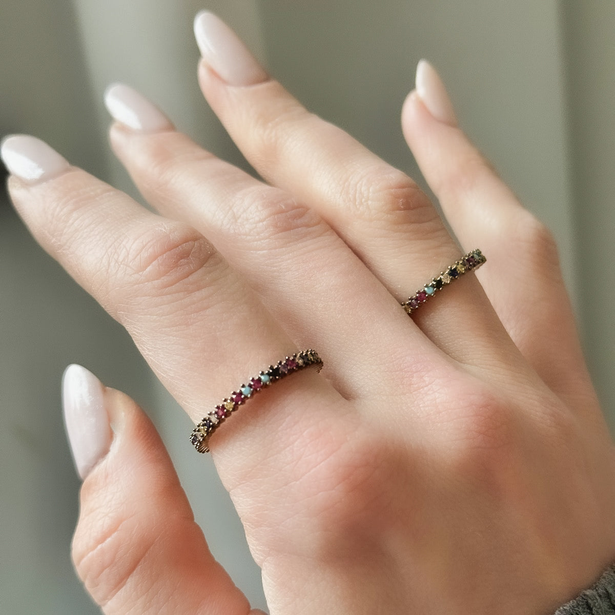 Paauksuotas 2mm sidabrinis žiedelis su spalvotu cirkoniu
