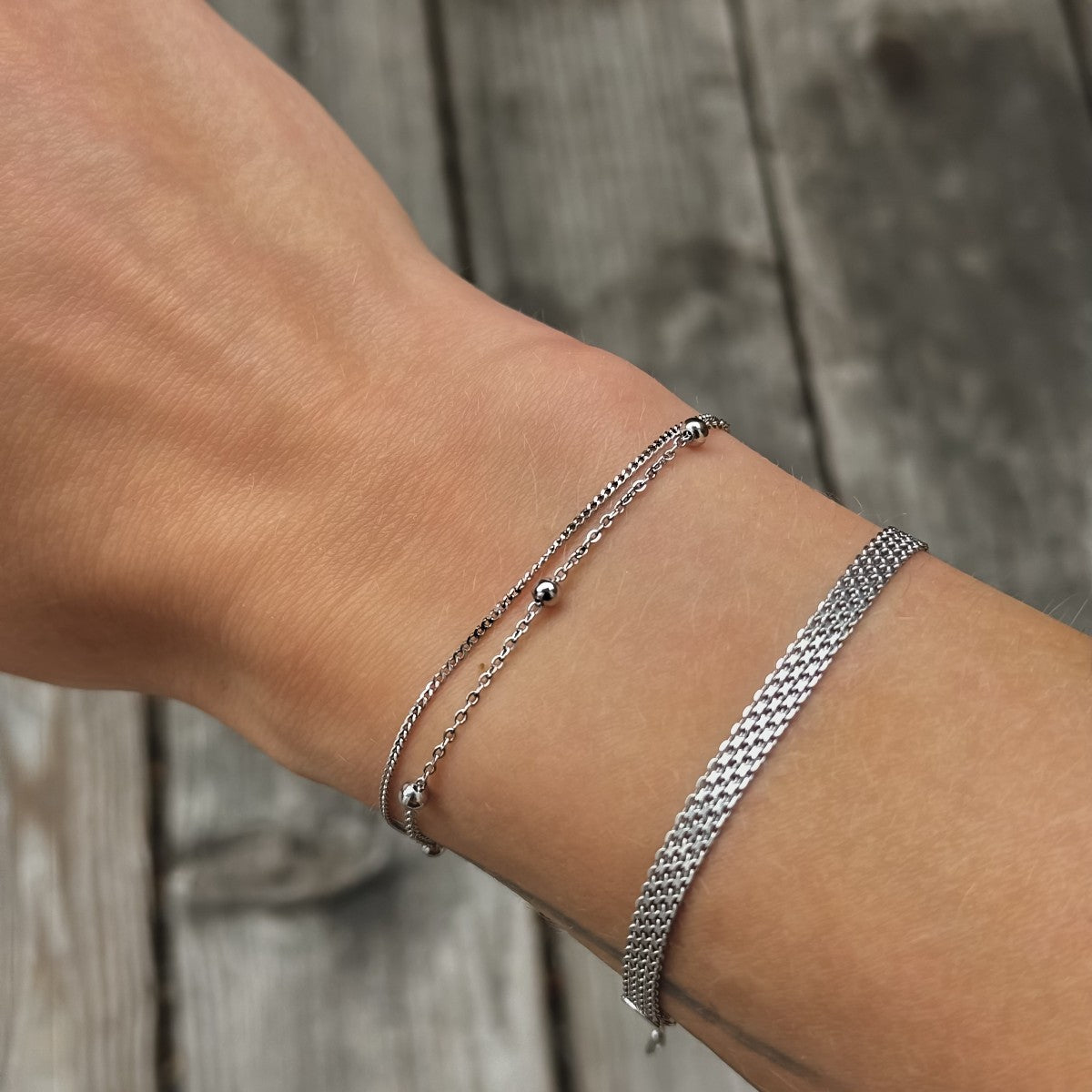 Sidabrinė rodžiuota dviejų gijų apyrankė