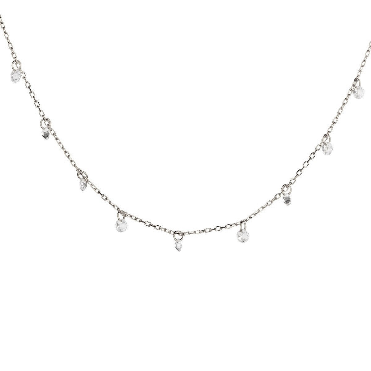 Sidabrinė rodžiuota kolje su kabančiais cirkoniais