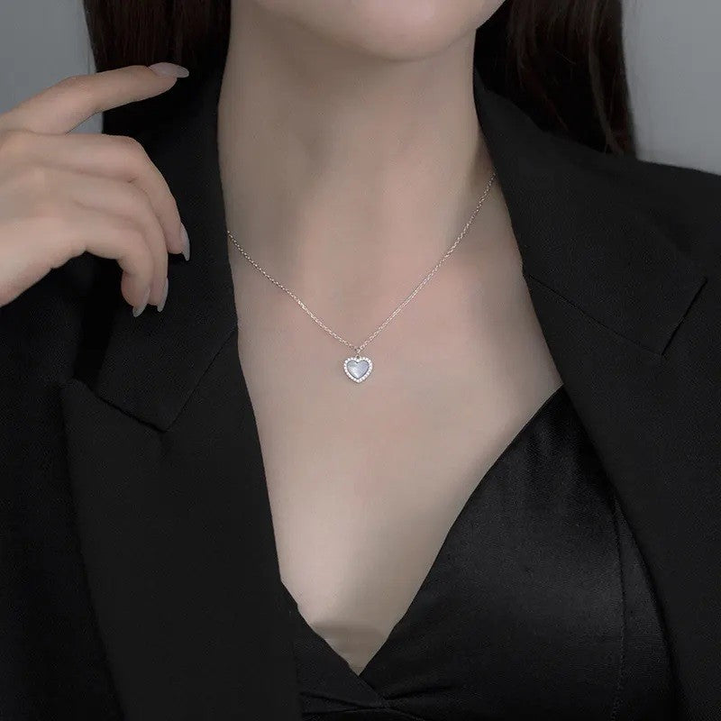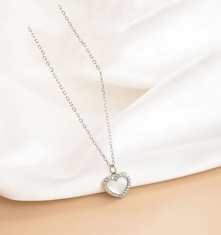 Sidabrinė rodžiuota perlamutrinė širdutė su cirkoniais ir grandinėle
