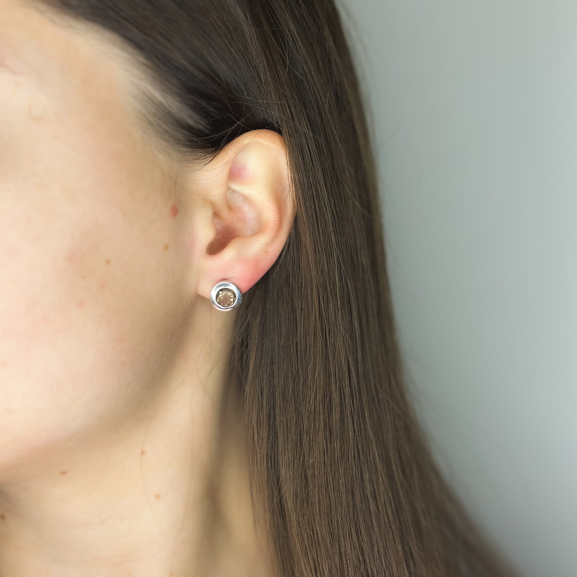 Sidabriniai apvalūs auskarai su dūminiu kvarcu