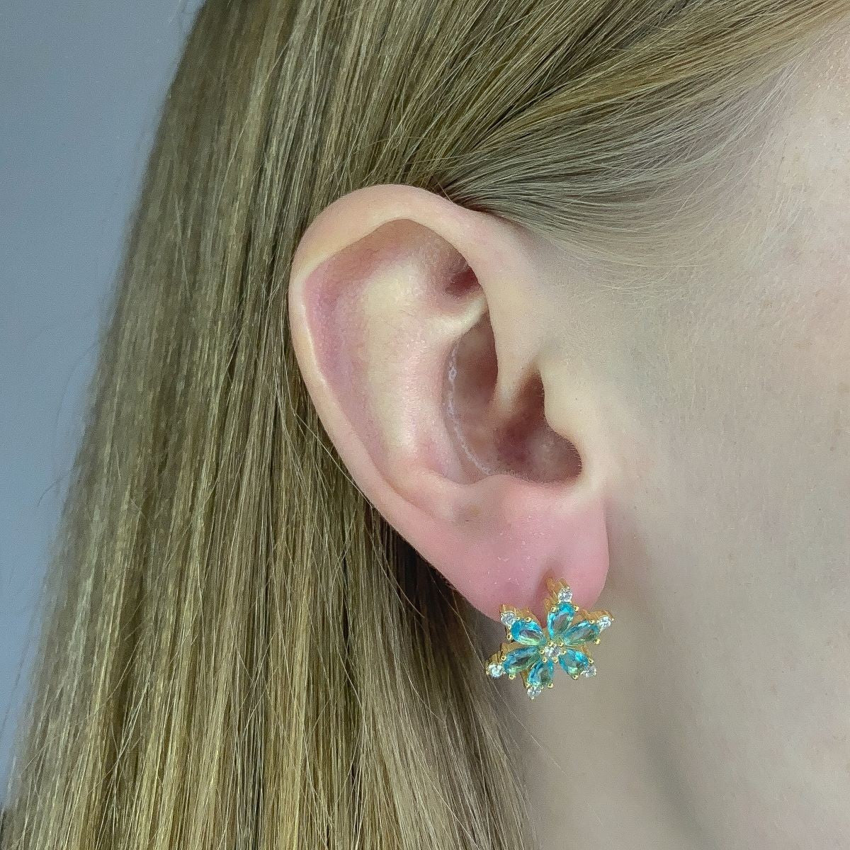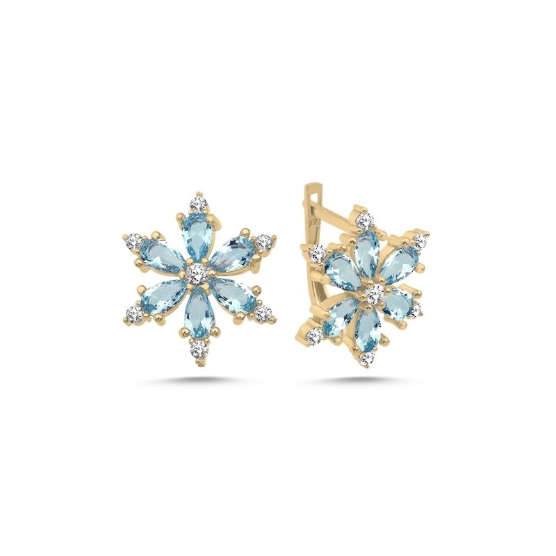 Sidabriniai auksuoti angl. užsegimu auskarai su cirkonio gėlyte