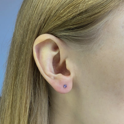 Sidabriniai rodžiuoti 3 - 4 mm vinukai su alyviniu cirkoniu