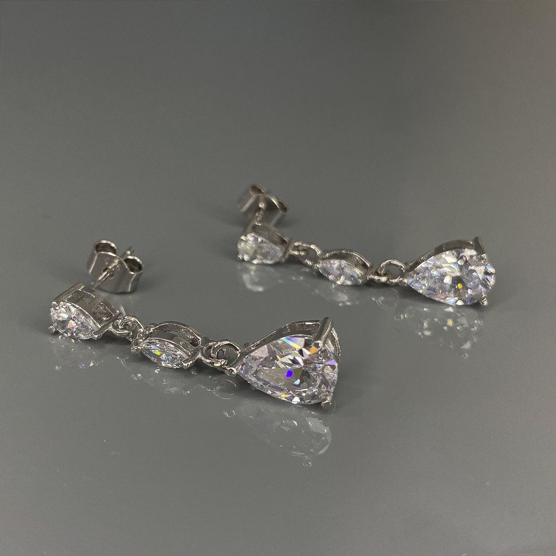 Sidabriniai rodžiuoti kabantys auskarai su cirkoniais