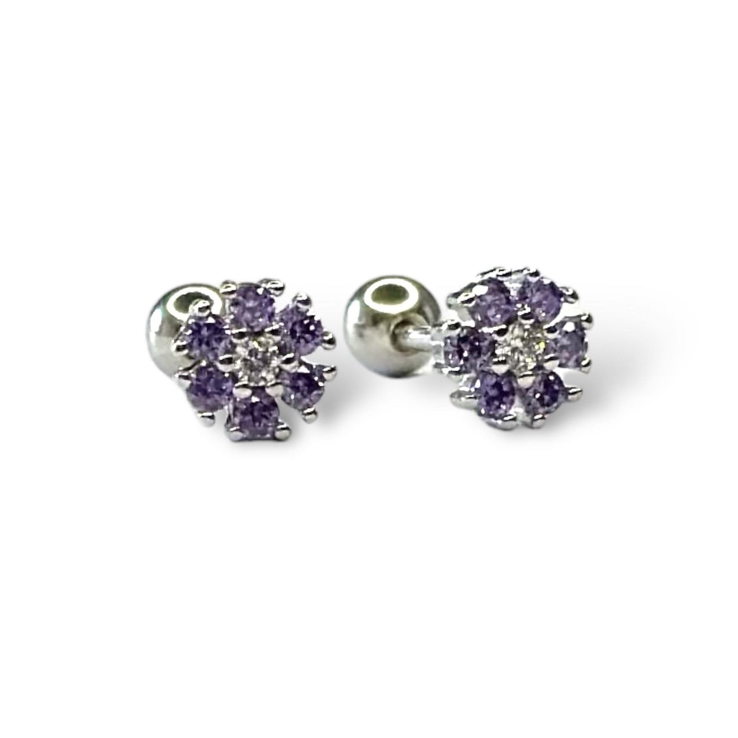 Sidabriniai rodžiuoti užsukami auskarai su alyviniu cirkoniu