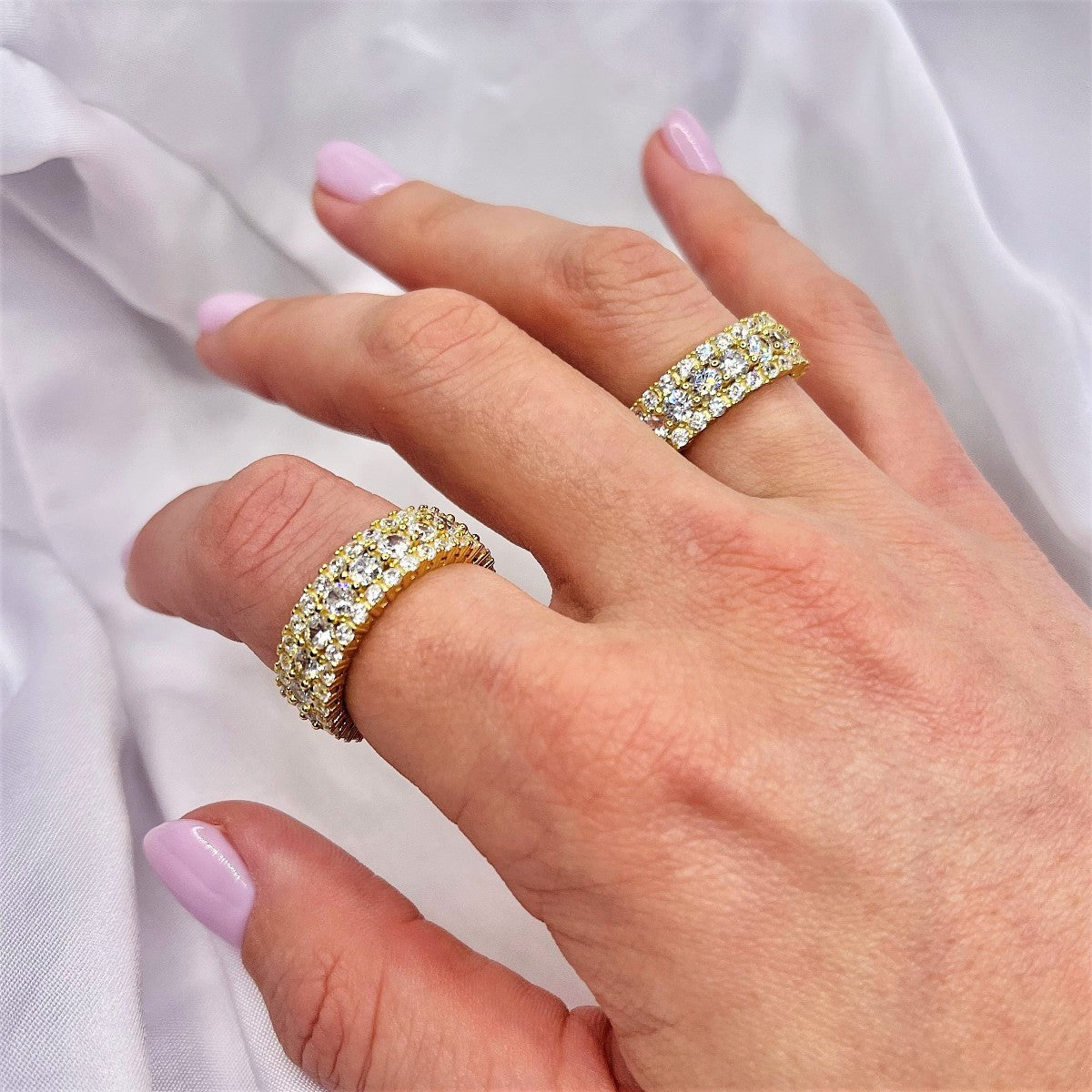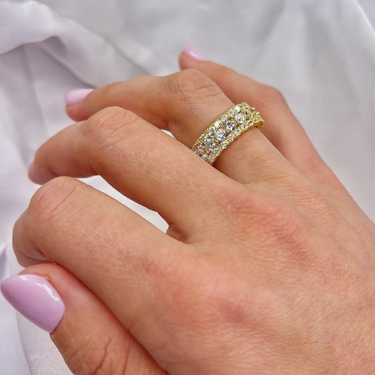 Sidabrinis auksuotas platus žiedas su cirkoniu