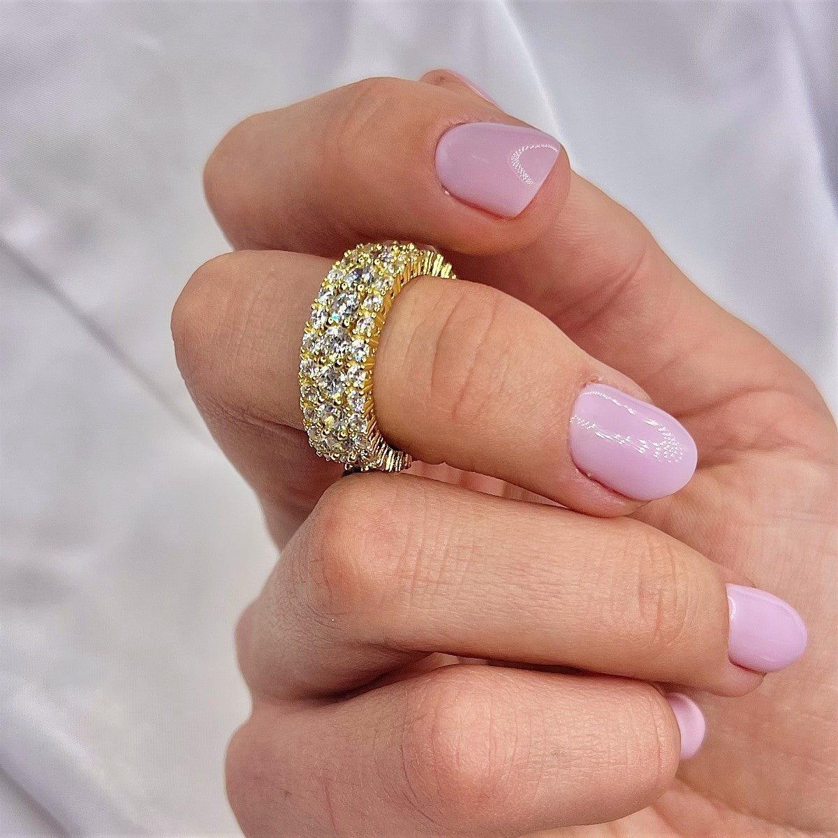 Žiedas dengtas šviesiu auksu.