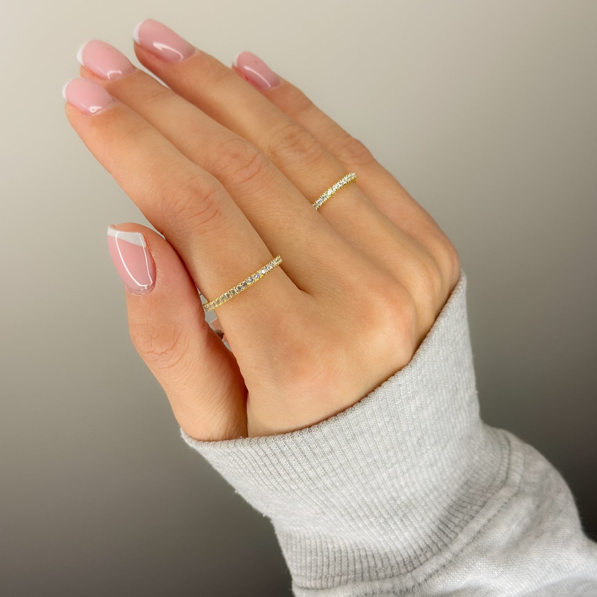 Sidabrinis auksuotas žiedas su cirkonių juostele