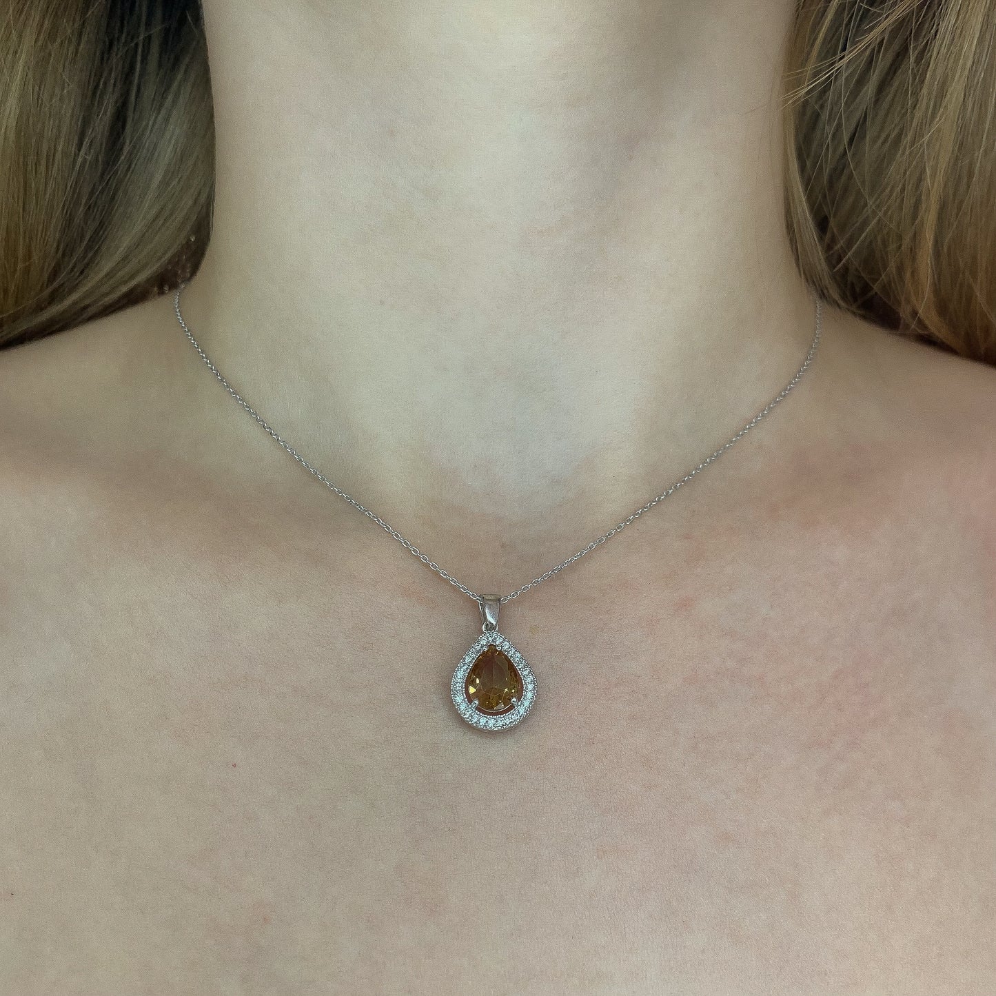 Sidabrinis lašo formos pakabukas su sultanitu ir grandinėle