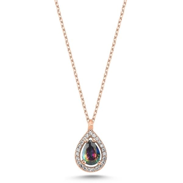 Sidabrinis paauksuotas lašo formos pakabukas su mistiniu topazu ir grandinėle