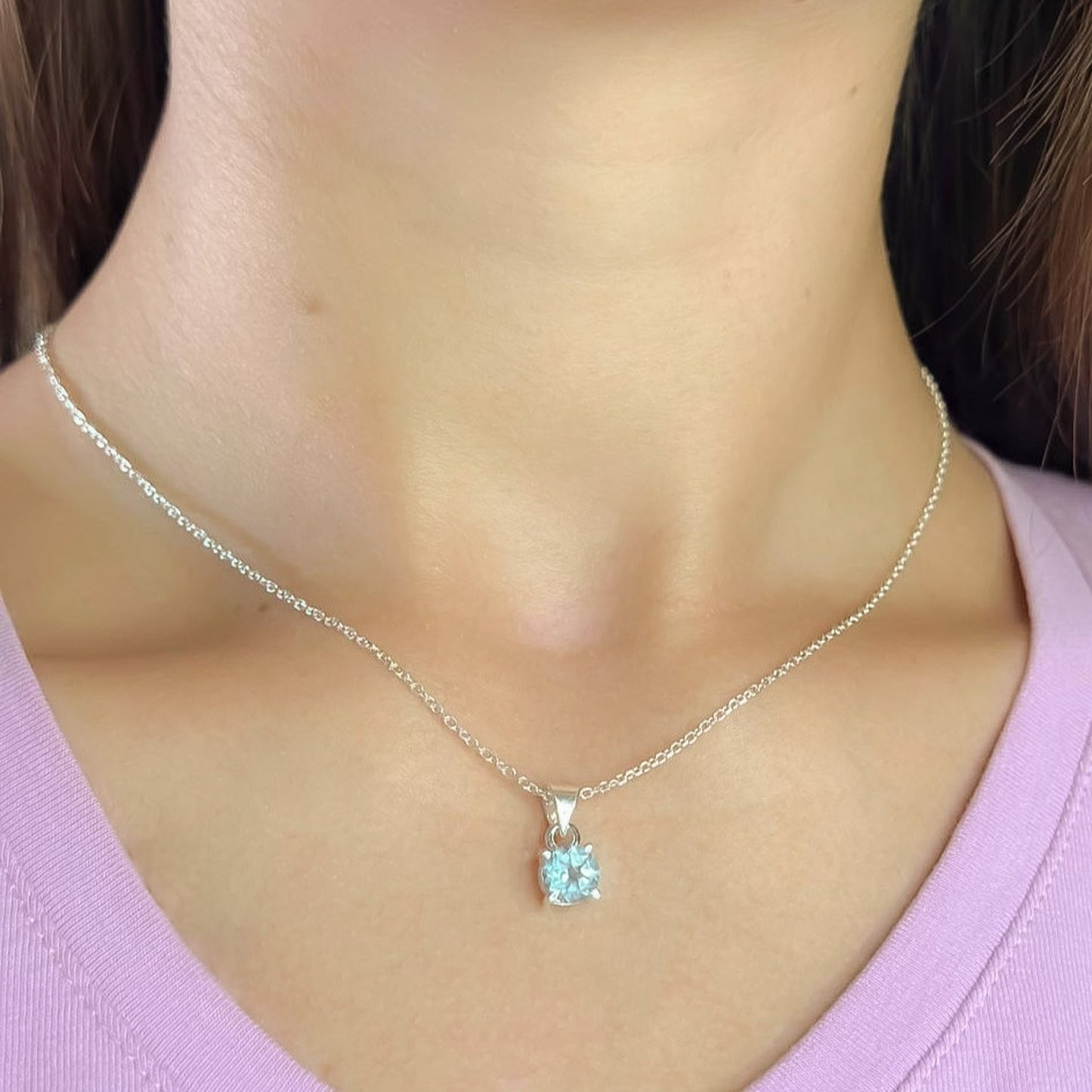 Sidabrinis pakabukas su apvaliu topazu ir grandinėle