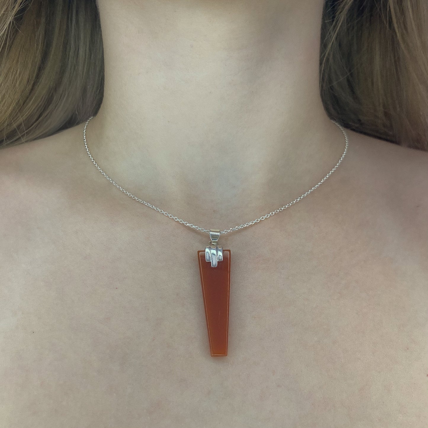 Sidabrinis pakabukas su karneoliu ir grandinėle