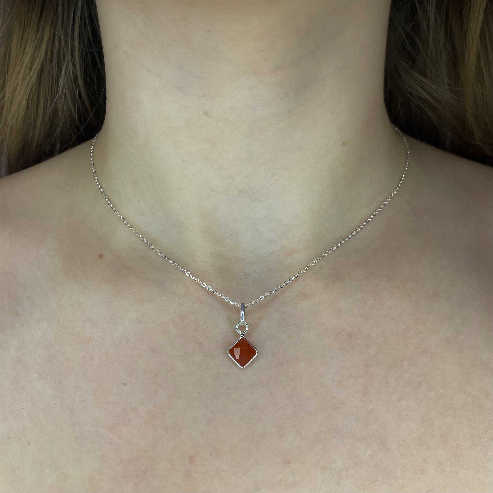 Sidabrinis pakabukas su karneoliu ir grandinėle