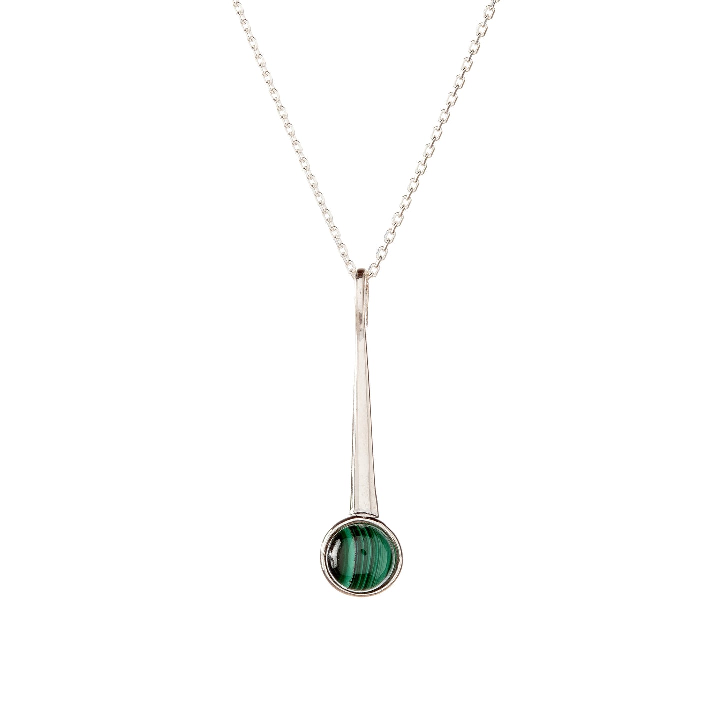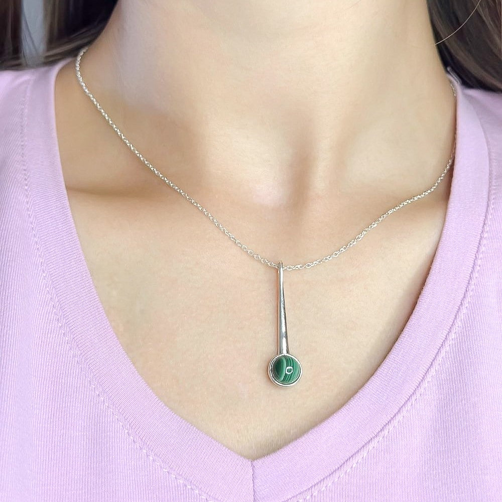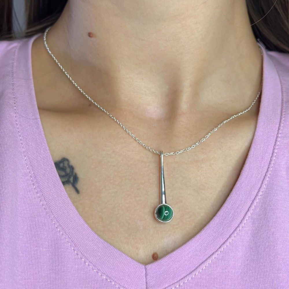 Sidabrinis pakabukas su malachitu ir grandinėle